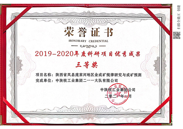 • 2019—2020年度科技項目優秀成果三等獎